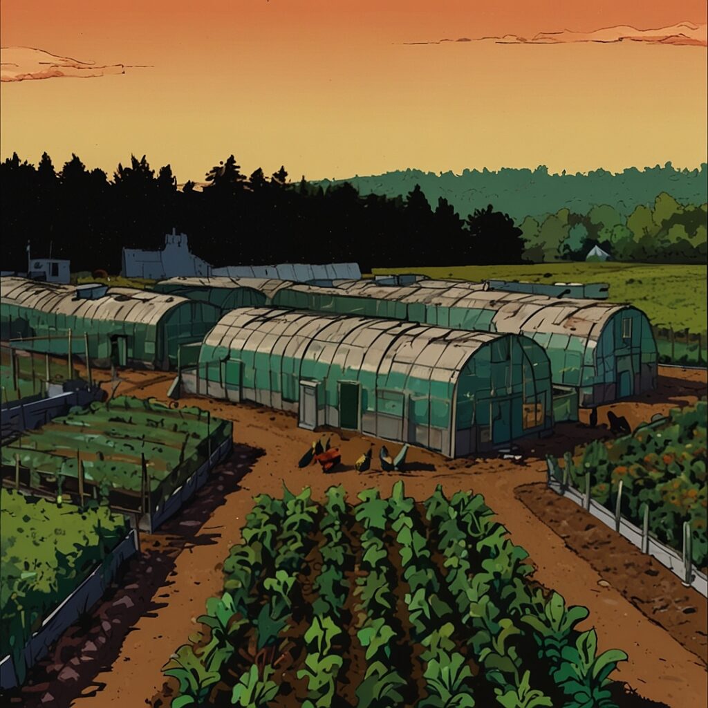 Greenhouses use sunlight to create a warm environment for plants, protecting them from harsh weather and pests.